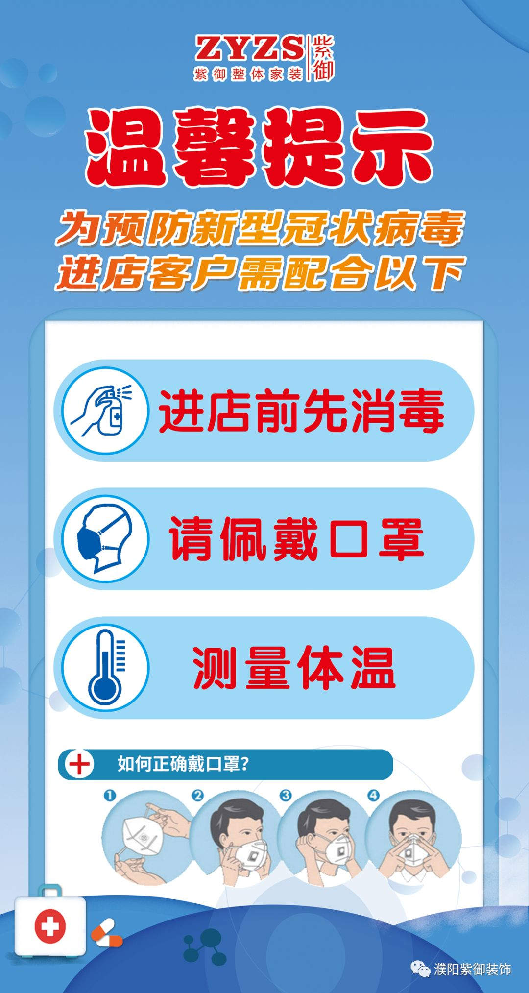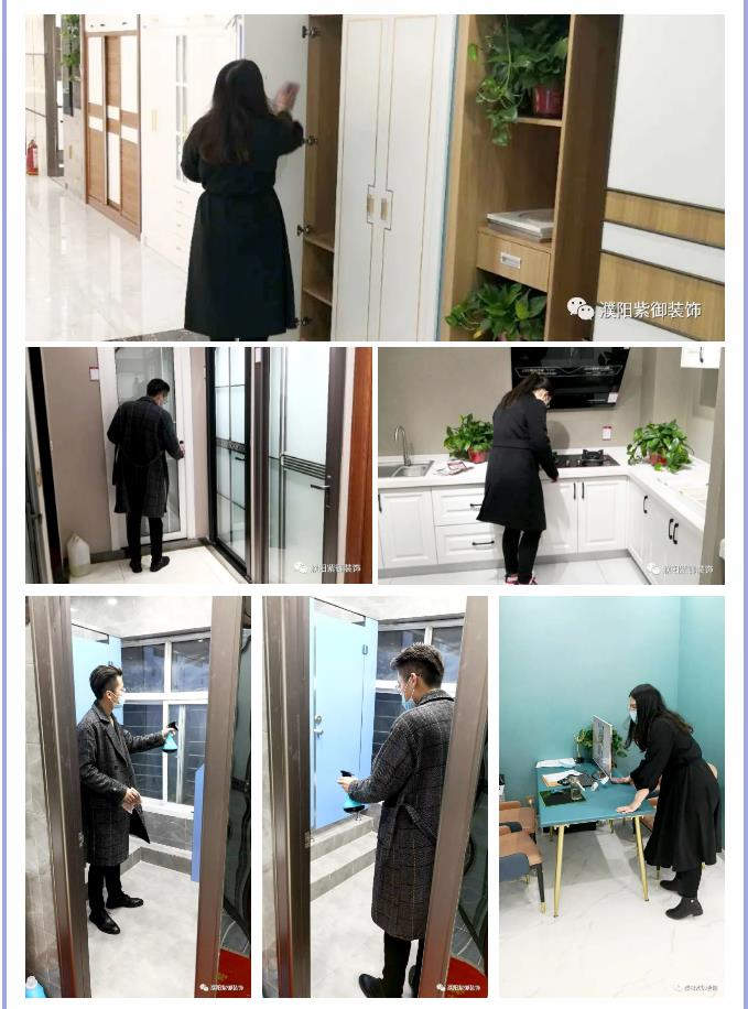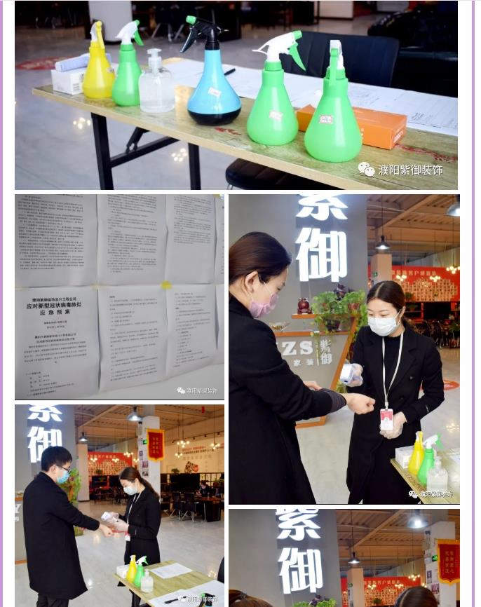 紫御裝飾已有序地推進(jìn)復(fù)工工作。為確保所有客戶和公司員工的健康安全,我公司已成立新型冠狀病毒肺炎領(lǐng)導(dǎo)小組,并篩選合格的工作人員進(jìn)行復(fù)工上崗,堅持每天將所有店面各區(qū)域進(jìn)行消毒滅菌,您可以放心到店。